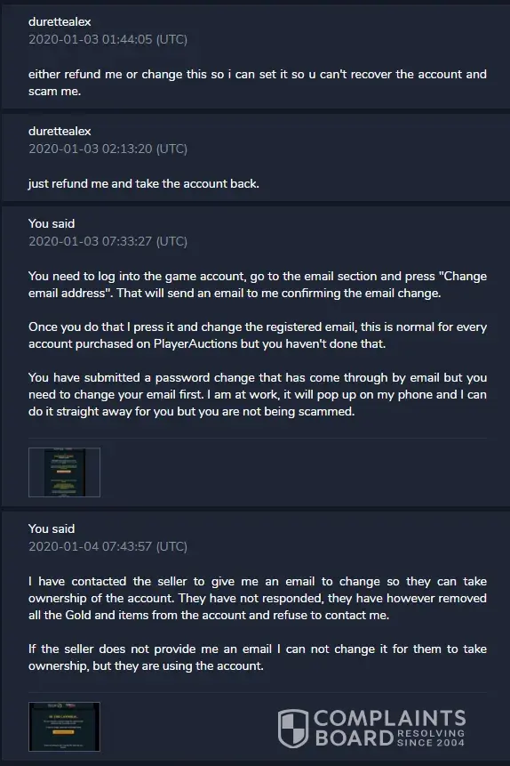 I went into my email (The buyer provides an Email address so the seller can change the email to theirs) and saw a password AND email recovery request so I provided these in screenshots to show PlayerAuctions that the buyer appeared to be lying.