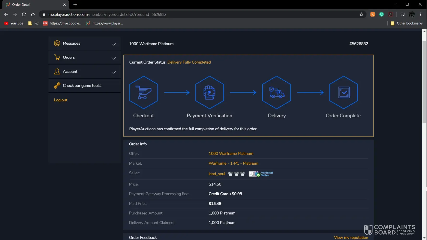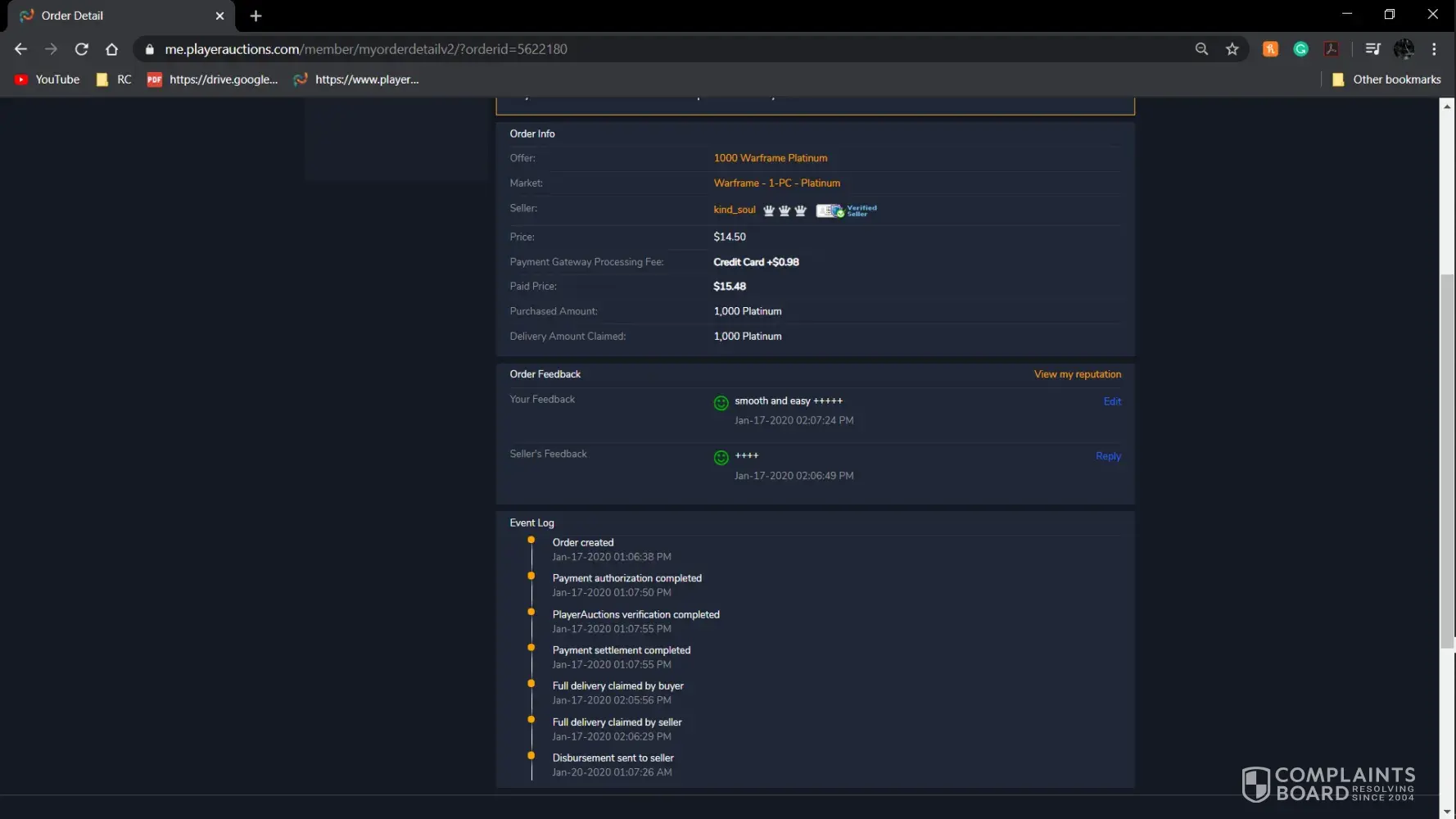 At this point, I've completely reversed my opinion of PlayerAuctions. When it comes down to it, they're no better than the scammer that got me. They take fees for purchasing and selling, and then charge for insurance on accounts which they do not fulfill.