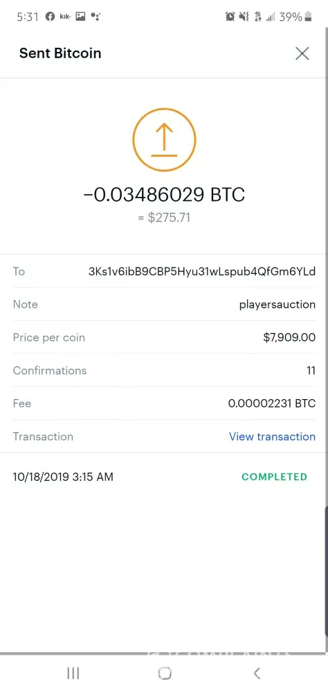 bitcoin sent but playerauctions claiming payment has not been received. $1,000!