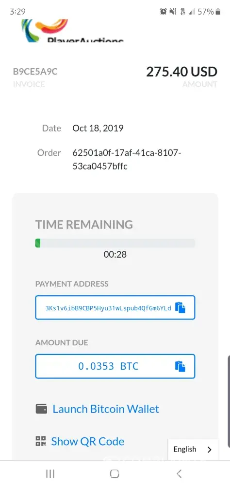 I was then told to proceed with bitcoin (as can be seen in my screenshots), but after completing that transaction I was informed that PlayerAuctions did not "capture" any money so I should contact my payment gateway. I'm assuming this is because there is a 20 min timer to pay with Bitcoin but the transactions take longer than 20 minutes to process. Others have had similar issues (google it).