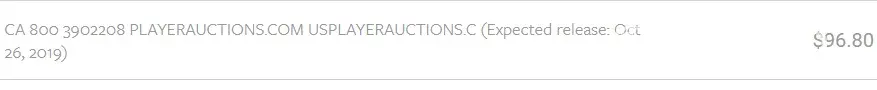 DateOct 1, 2019 (Pending) DescriptionPOS DEBIT PLAYERAUCTIONS.COM [protected] CA Amount−$304.07
