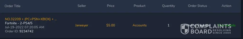 This was the link to the order -https://www.playerauctions.com/cod-mobile-account/181780361a!legendary-shorty3-lucky-draw-charactersgunzoscylla/?_ga=2.55570603.1454490957.1656850828-1161391260.1656850827&_gac=1.48898644.1657024972.CjwKCAjwwo-WBhAMEiwAV4dybXWIMOkM9slPBp40DaCvvU5PLffYc5H5pJdHQVfW44rn8JwYkE-cKBoCyhMQAvD_BwE