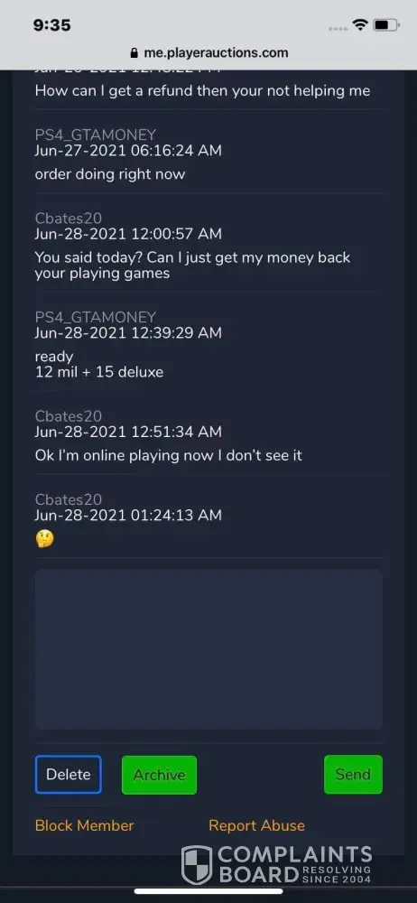 I purchased some GTA 5 money for the ps4 and never received the items I played $15.07 for. I contacted customer support numerous times and I get the same old replies saying that there looking into it. I am beyond pissed because the seller is playing games with me thru the text on the site. I don't know what to do but I want my money back. first the seller said he was going to work on it. Then he messaged saying that I'm not on psn which I am. You can't play GTA online without being in the psn network.