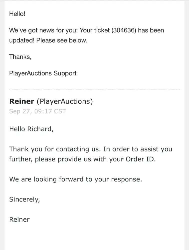 > If you would like further assistance with this, please contact us and provide your PlayerAuctions