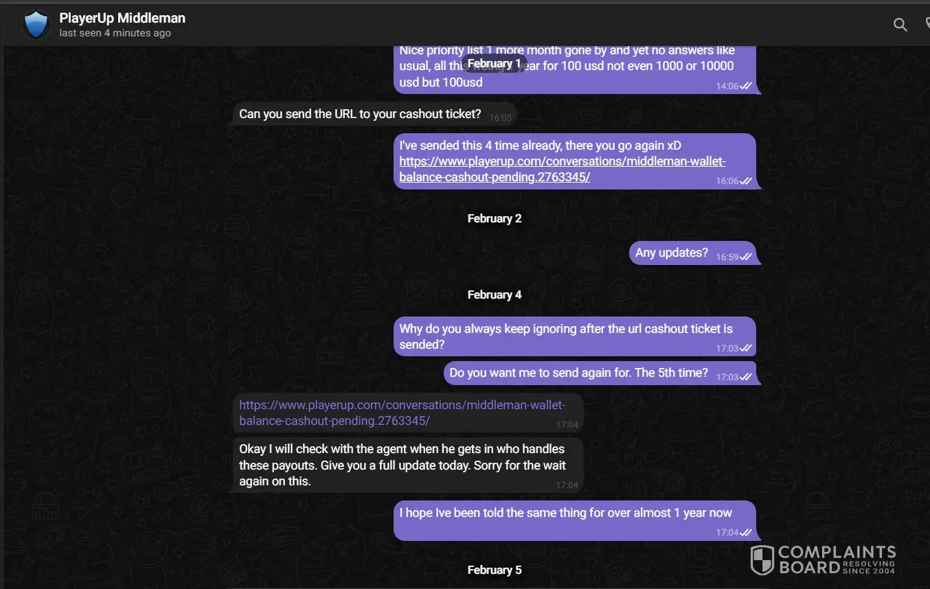 It’s understandable why you’ve reached your limit with PlayerUp after waiting 29 months for a payment and still not receiving the full amount. Sending only part of the money and losing track of another $300 is outrageous, and it’s clear they’ve been trying to silence complaints rather than resolve them. Being banned from platforms like Trustpilot speaks volumes about their business practices. Filing a complaint with the authorities is the right move—hopefully, it leads to action. It’s frustrating to deal with scammers like this, and you’re right to stand your ground.