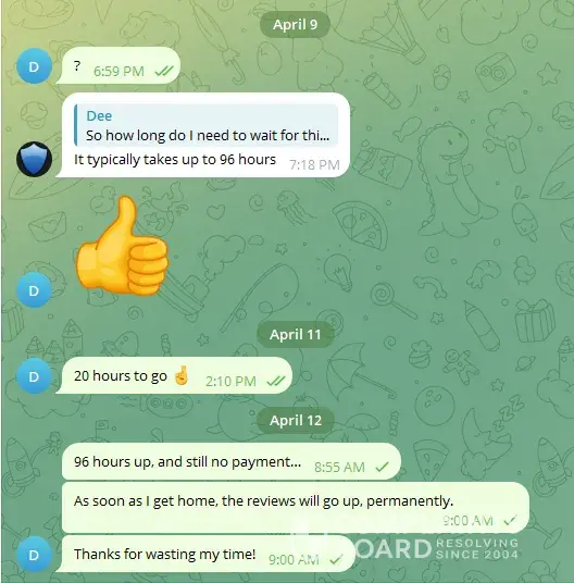 - Since Telegram, countless emails sent asking me to delete my messages on sites like Reedit. I saw that they had been banned from Trustpilot for this reason.