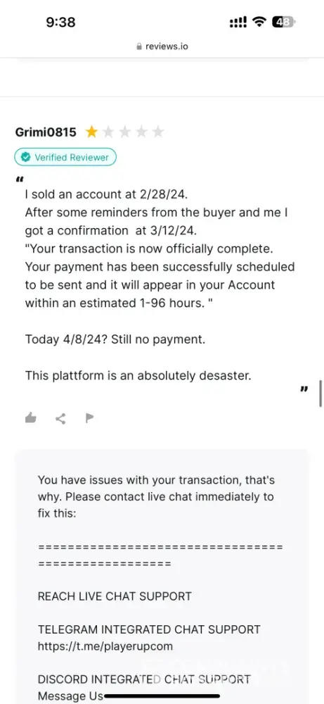 Based on my experience and the feedback I have gathered, I must warn everyone that PlayerUp is a scam. I am aware that this review might result in my account being banned for a fabricated reason, but I have no other choice. I have waited long enough for my issue to be resolved, only to be ignored.