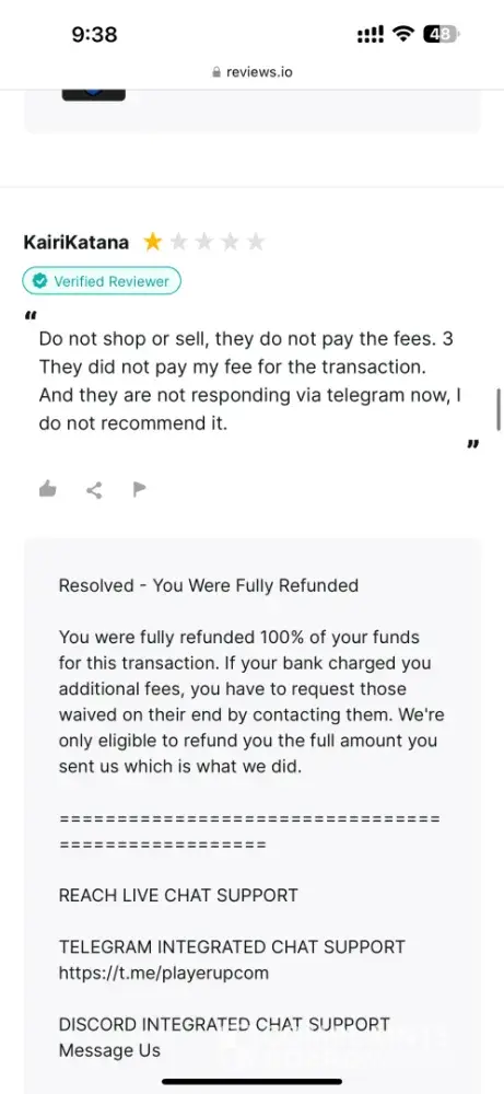 That page (playerup) is a scam, they never gave me my money, I wrote to them by telegram through the same website and they did not respond to me AT ALL, when I made my complaint on the opinion pages they responded to me to delete my reviews and they gave me my money and I listened to them and they did not comply, I am already tired, I no longer care about losing my money, I want everyone to know that this page is a scam, here I leave the images of the conversations, do not waste your money on that page. They threaten you with your money until you delete your review. To all those who have been scammed, file your complaint here https://reportfraud.ftc.gov/#/ so that the scamming page (playerup) can be sanctioned.