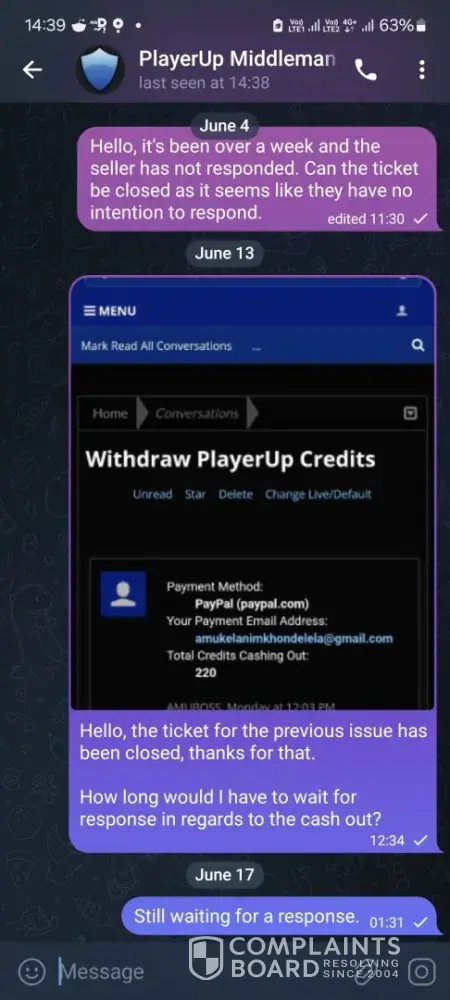 Three months ago, I sold an account through the PlayerUp platform. I received confirmation that they had been paid. But I haven't received the money. All my attempts to contact them have been ignored. I read that I needed to submit an ‘URGENT TICKET’ — I did so on 25/09 but didn't receive a response. I also sent them an email.