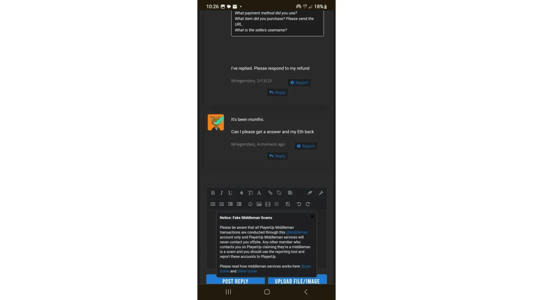 In January 2025 I sold an account on playerup.com using middleman services. But middleman does not pay me my money. The site support ignores my messages. In the telegram chat there are only empty promises. I will update my review later.