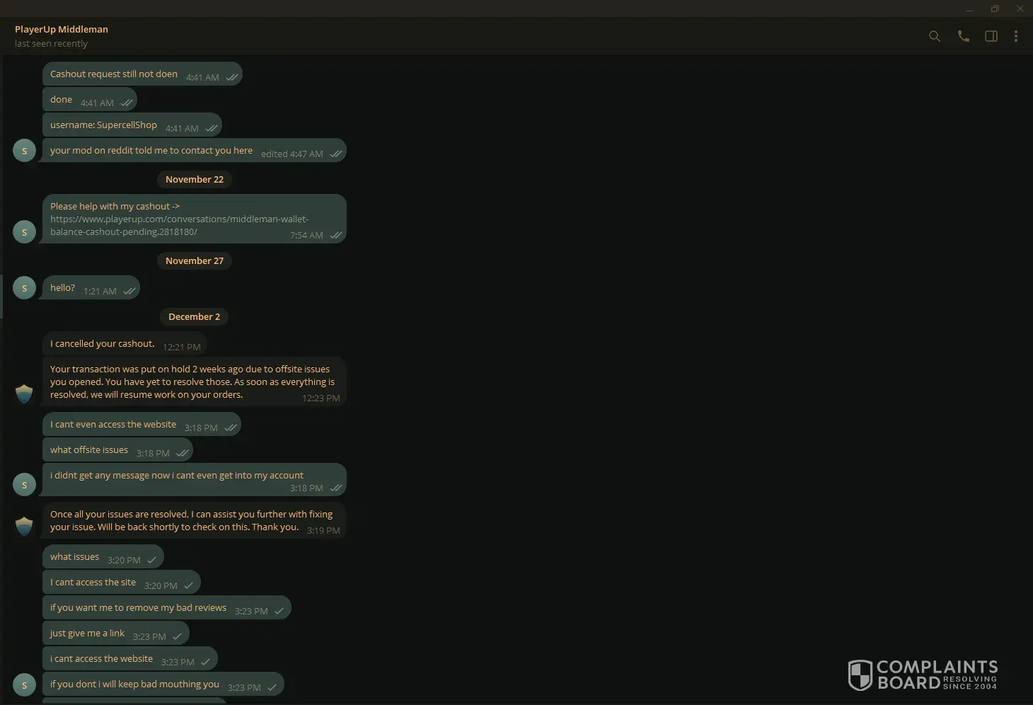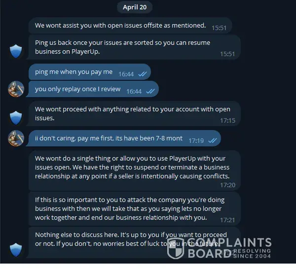 PlayerUp have reached out to me to resolve my issue, I have been using their service for years now and no problem if you want your issues solved contact their support on telegram they will help you