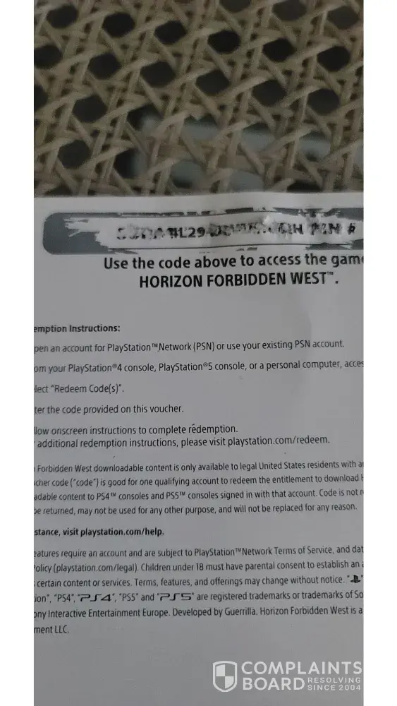 Sent me a voucher, along with ps5 console, 100$ more than normal console with horizon voucher included, the game is 60 by the way, but regardless the voucher is unusable, the code is damaged, and they absolutely know the product they sent to retrieve the voucher was damaged, the scratch off code was underneath already printed letter therefore when scratching off the silver part the printed letters cause the area underneath to stick to the card stock, making code unreadable, so not only was I charged 40$ more for a title that's 60 on their site, but the 100$ extra for the console was wasted since I can't even access the download. the support will not transfer me to a human, so customer service is non responsive.
