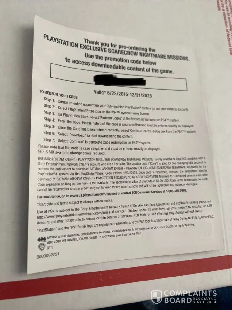 Today (December 30, 2025) I was finally ready to play my Batman Arkham Knight game for the ps4 for the first time ever so I decided to remove the factory sealed wrap and open the video game but to my surprise I have to type in the codes to in order to play each of the 3 additional content (As Shown in the Pictures) and the codes expire tomorrow (December...