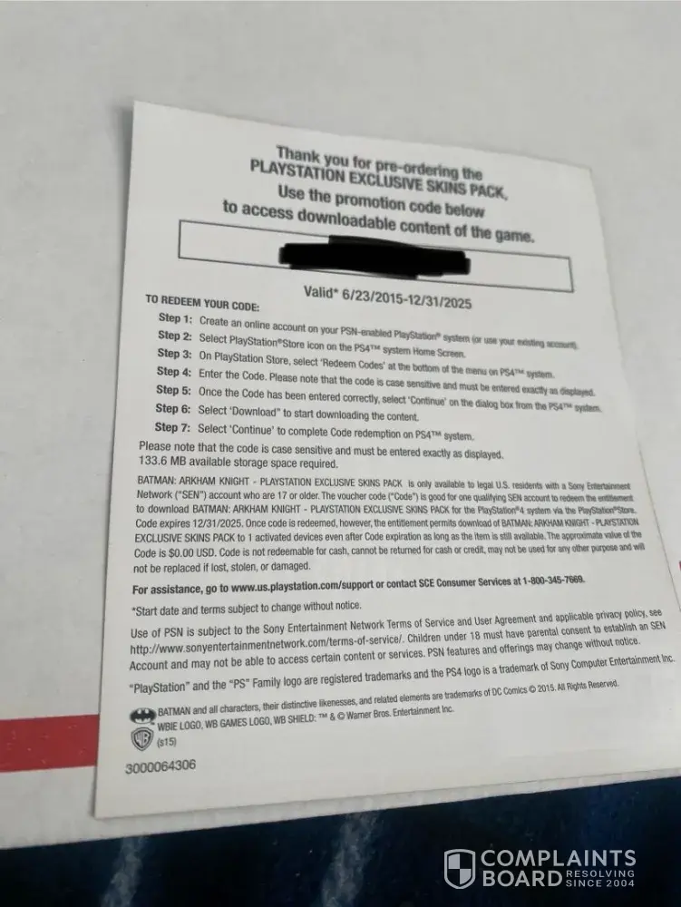 Read full complaintPlaystation