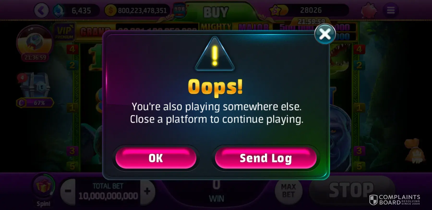 Playtika you have a pattern, we loyal players buy buy buy to lose, bu tg after about 4 to 8 weeks we get a winning streak for about a week, then a corrupt popup stating I'm playing somewhere else which is a lie, then get booted come back and all your winnings seem to go, you put is back on the losing streak till broke and for another 4 to 8 weeks guarantee you will lose. And then I send emails regarding that fraudulent message and what happens, send in my error log number but you never can answer because it's a way to get more real dollars from me. Cause you are doing it.