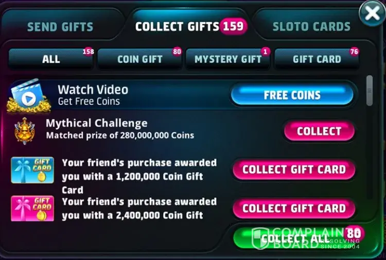 Hi my name is Dina Russo and I have recently started to play Slotomania the #1 Free Slots Casino. I joined a Group plus joined a Clan which forms part of this game. Because of this the number of Facebook friends playing the same game has increased. I found it very painfull to click on each individual name to collect my daily gifts. They have this HUGE padlock on preventing me to "Collect All" with just one click. When I enquired about the lock and why is it there and not on the Send Gifts section. I was told I had to buy to have it removed or I must reach Platinum Status. Well I eventully broke down and bought a small package to get the Lock removed. To my horror after a week the lock was back. I immediately wrote to Support and their respons was " the removal of the lock is only for 7 days" to have it permanently removed you have to be Platinum Status. This is their ticket #INC11410861 - Slots showing their respons to me. I will attach a screenshot of purchases one can make and you will see there is no mention at all about a 7 day period. Why on earth would one have to pay for a small function like that YET ! the "Send" function is only one click and you can send gifts to all the players on your list. The exchange rate South Africa to USA is horrific and being a pensioner I most certainly cannot pay weekly to have the lock removed and it would most likely take me years to get to Platinum. I am currently Silver and will most likely nevere get past that as currently they are advertising that the New Year it sets back again. You will only maintain the few points you earned in December this current month. And they must think players are stupid ... it is so clear how rigged the slots are they know when you don't have coins to play with they push those pop-ups to buy, buy and buy .. in your face non stop. They sad thing is there are so many getting into debt playing. Sorry about me going on but a small function like Collect All to pay for that its crazy ! My email address is : [protected]@yahoo.com