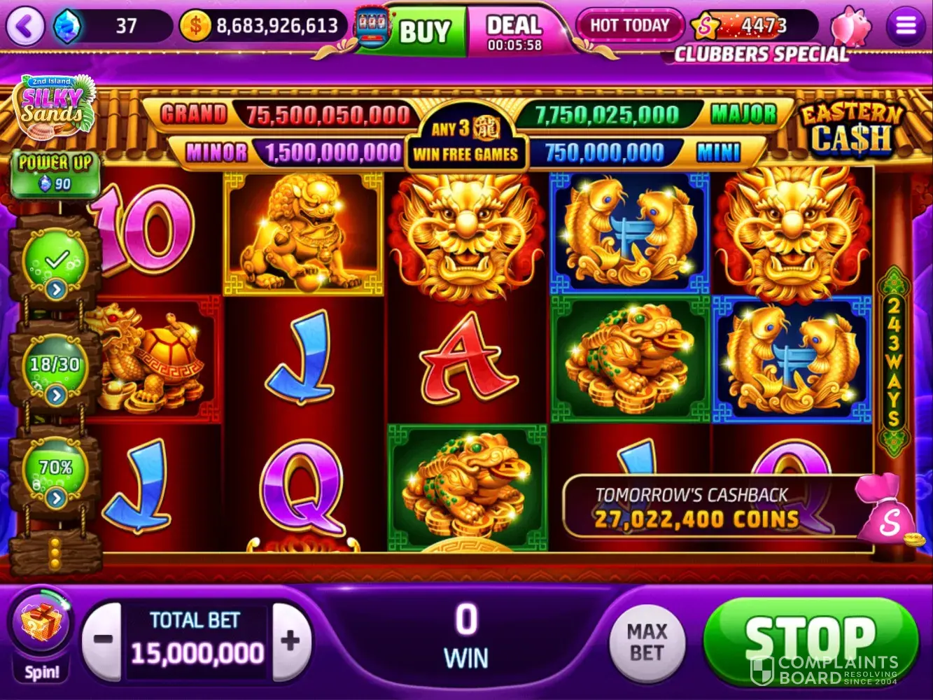 The challenges are some times so ridiculous. For example, you have to collect 3, 300 club points. This couldn't be more stupid. In order to collect that much, even betting 250, 000, 000 per bet, you only gain 33 club points every 300 spins, which roughly means you have to spins 30, 000 times to get that many points. If you win an ace, which by the way is right now less than once every 600 spins, you have about a 5% chance of winning slotto club points.