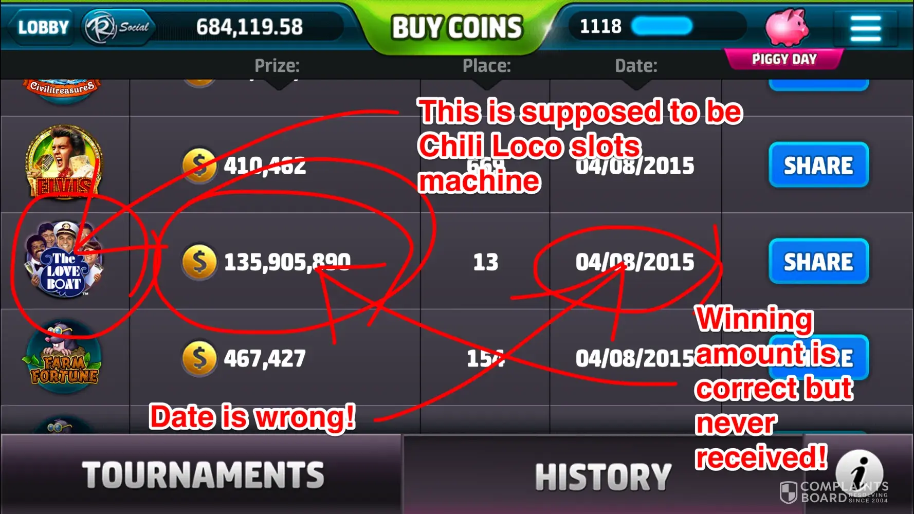 In the past two days i have not gotten two of my tournament wins! It came up and said winner so i pressed the collect button, and it shows the coins going up to my balance but nothing is getting added, my father and i have both lost several coins, he has lost a lot more then i have, like millions of them. I am starting to get very angry. Him and i spend money on this game and to get no coins for what we have earned is just irritating. Also i bought coins yesterday, and i never got my five Sloto Cards that it said i would get. Is there anyway him and I will get all of our coins for the tournaments back or no?