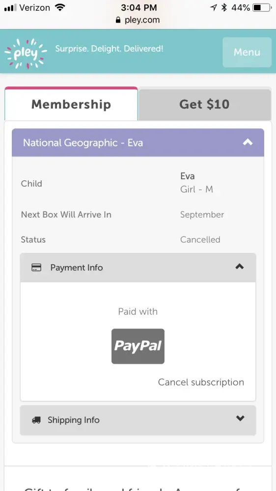 My grandson ordered a Lego set through a Gift account I set up. He never received the set but I was charged for it. I contacted PLEY through their website, they confirmed the opening of a case # but never heard from them again. Repeated the process 2 weeks later and the same thing happened.