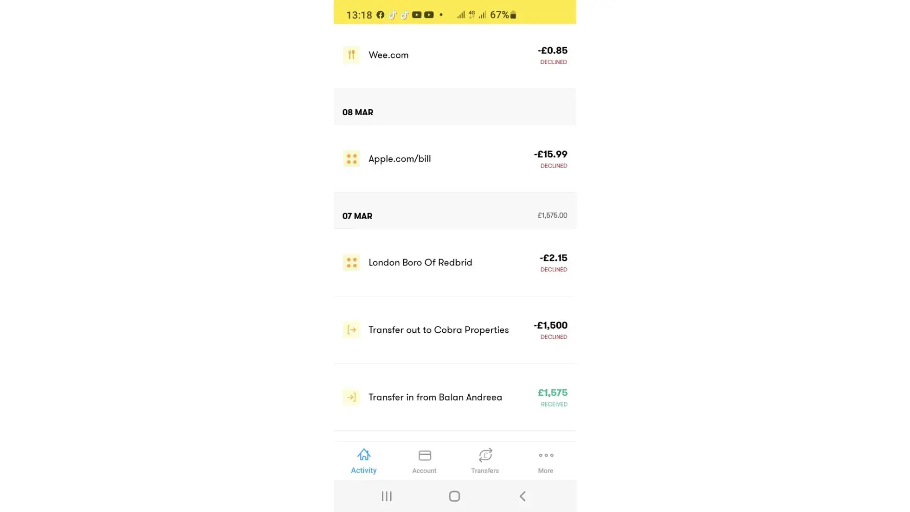 On the date of 07.03.2022 around 10am i did a transfer of 1575£ from one other account of mine(Nationwide) to the Pockit account so i pay my rent. The reason i transfer the money into Pockit to pay the rent was because i didn't have the card reader from Nationwide so i can do the transaction and with Pockit you can transfer without a card reader. Minutes later i saw my transaction was declined and account was suspended and i couldn't transfer the money from Pockit account. I di understand on that time that they need further information from where the money come and what's the reason of the transaction. I did provide all the information and the reason, plus i was beging them to return the money as i am going to lose my property ,thing what also happen in the mean time i lost my property , some friends received me to sleep , but having a child is little bit to much for them and i do understand. But starting with the date ot 07 March when they suspended my account till today 22 March they haven't releas my money ,becausemy account was in review i did send all the information with billinginvoices fromDeliveroo i did send the statement from PaySend account because there is where Deliveroo is sending my wages, i did send statement with my Nationwide account, i also email them to return my money and i also send a picture as they ask ,with the statement from another account having on top name address sort code and account number and after i send the email to return the money and the statement, normally it's saying the money will be returned within 5 business days, but also didn't happen . That's why i am complaining here , please help me to take my money back , i don't want to have an account with them never in my life. Please help me to recover my money. Thank you i will attach a screenshot with my account now being under review