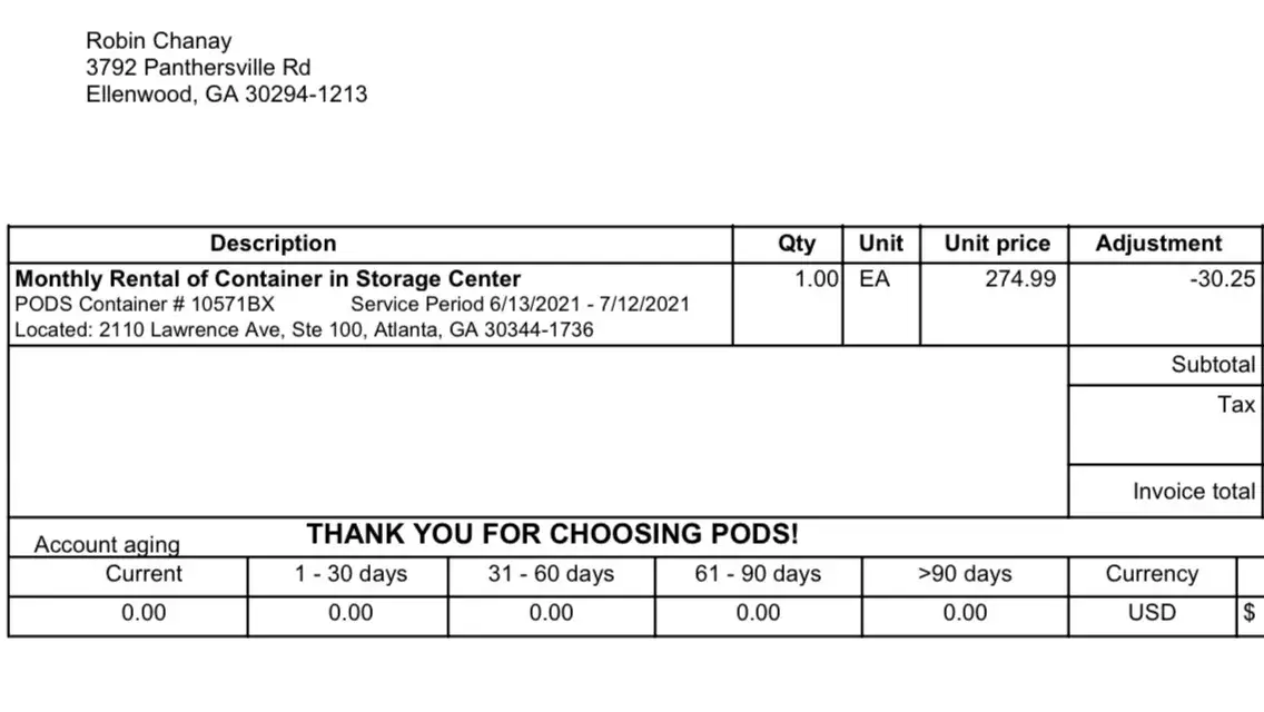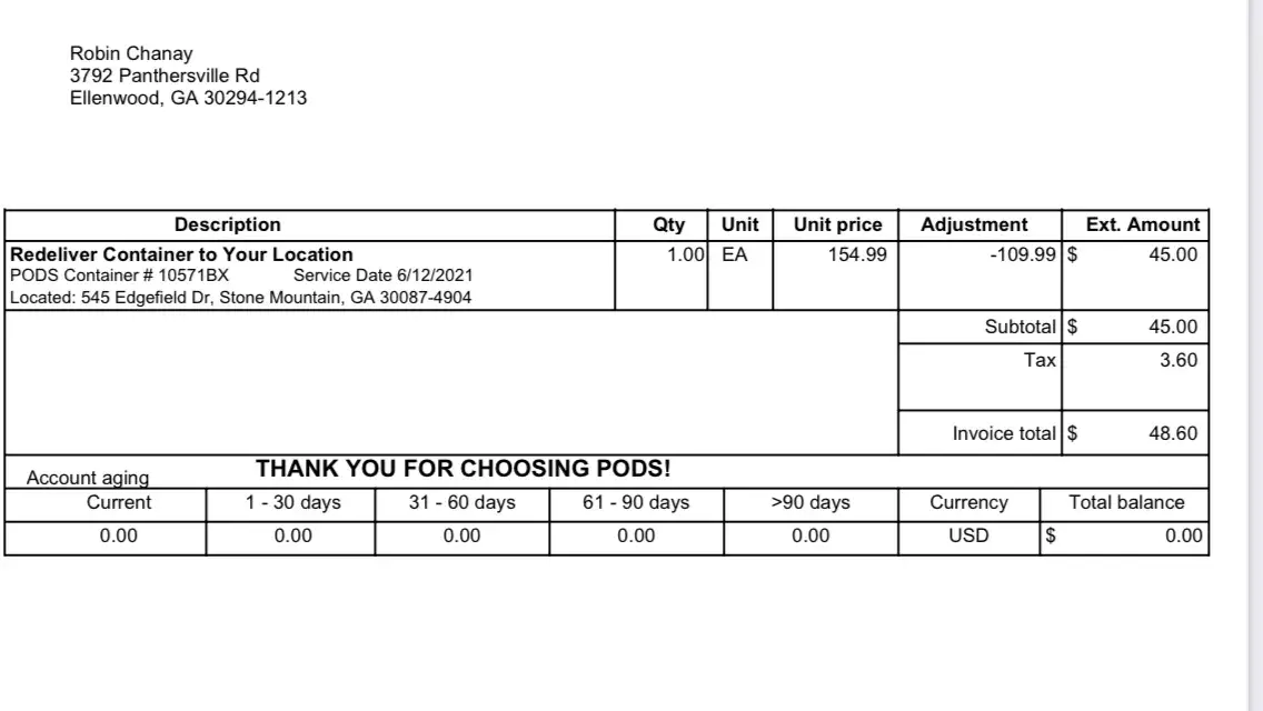 On June 12 of this year my Pod was delivered from the storage facility on Lawrence Ave. in Atlanta, GA.