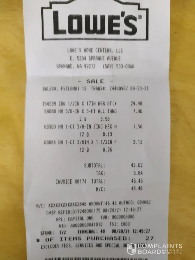 Lowe's Hardware - Threaded Rods and Bolts $46.46