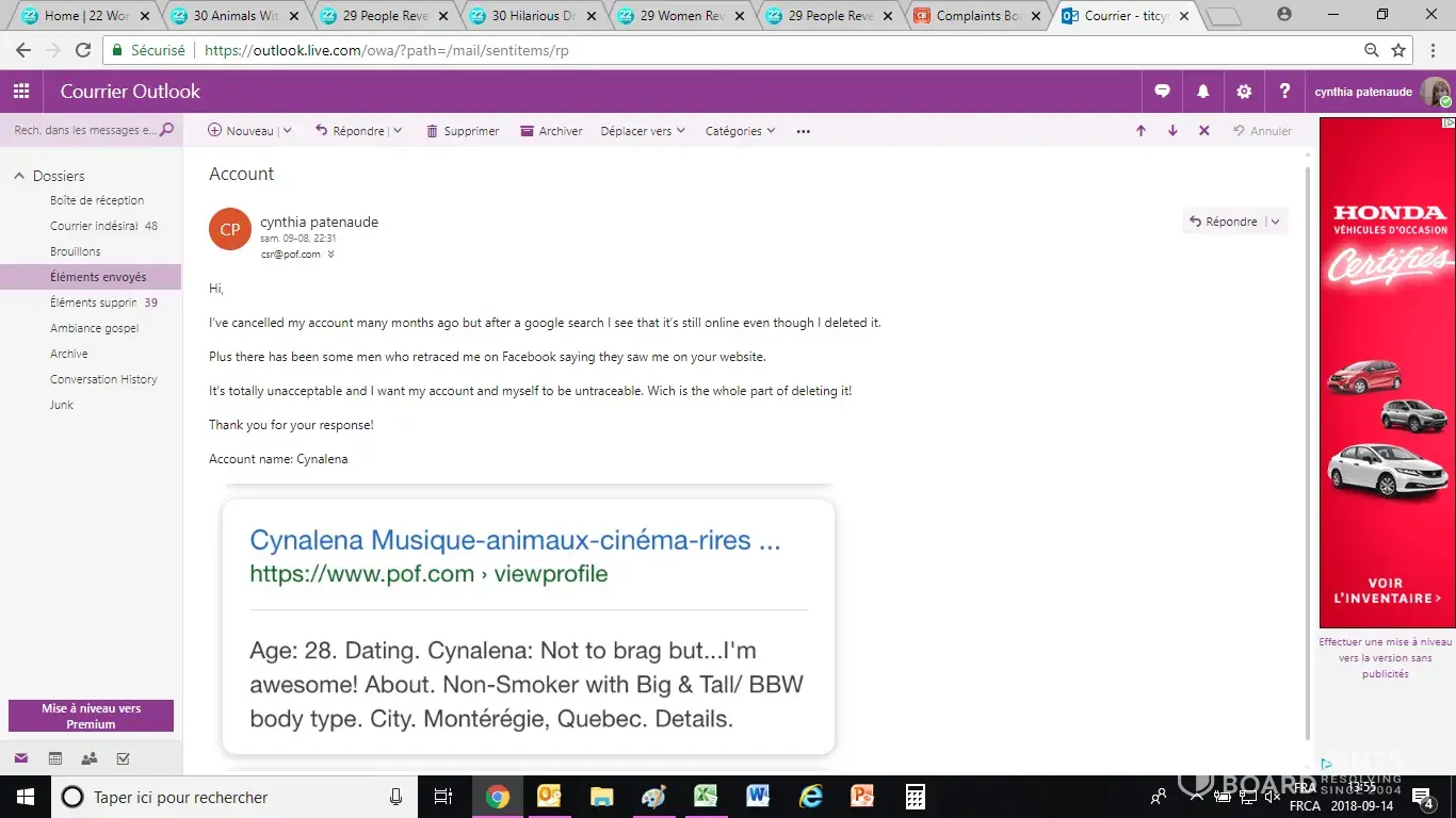 I've deleted my account (username : cynalena) on POF dating app and website several months ago but it's still online. I've wrote multiple emails about that situation and never got an answer.