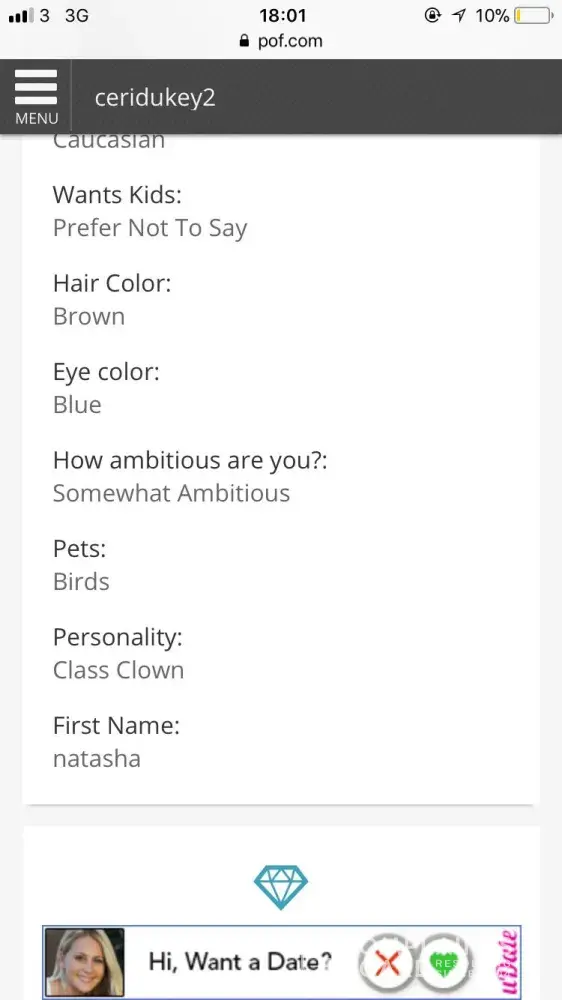 Both Match and POf use a scam to lure you into paying a fee.It works like this: You join and post your pictures, create a profile stating what you are looking for. POF uses a computer to match you up with prospective clients, but it does not weigh in your entire profile, then it uses users names claiming they want to meet you but you have to pay the fees first.As it turns out few if any actually want to meet you and none are in the area you live or match what you seek.