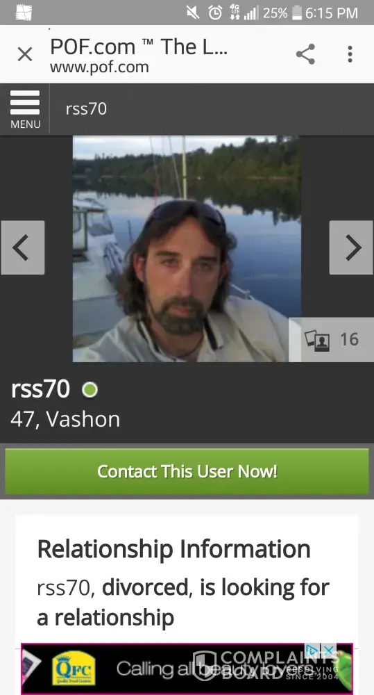Suspected cheating as he's done it to me before. Sure enough looking4u201360 profile with a charge to POF on his credit card he left visible for me to see... we live together. He's filed a fraud with his credit card stating that he never charged it. Coincidentally I'm sure. Anyways his profile was taken off 1/2 hour after me bringing it to his attention. Not sure this info is of importance to you. Just real crappy. Oh and he definitely is seeing someone he met on there. I'm sure she doesn't know he has a girlfriend.