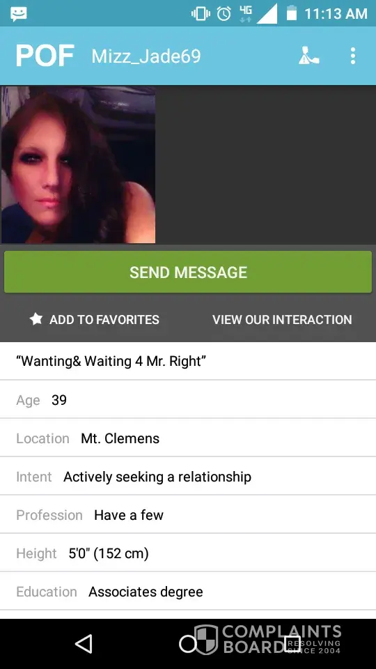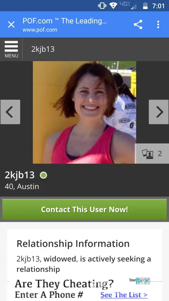 This is a fake page. I submitted the photos sent to me. These are my photos and they are even using my information about my life and kids! I'm guessing they got it from Facebook. I don't have a POF ACCOUNT. MY friend that reported the page told you all it was fake and the response you gave him was if you don't like this person, it can cause you to get deleted. If this page doesn't get deleted, I will take legal action. Thank you for your time.