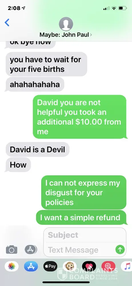 Spoke to three different men all sounded foreign . Asking for my card info saying I will be refunded via Apple Pay. I went around and around with no luck nothing they said worked. Then a man called me back said his name was David and at first seemed helpful then he said I had to open my photos and I would need to scroll through all my photos one by one to activate the refund I told him no way he told me it was the only way to get the money transferred even told me that he knows his job and if there was another way he wouldn't be taking so long. Then he told me I had to [censored] him the only way to get pairs was to [censored] him. Obviously I didn't open my photos and to say the least I was fired up.