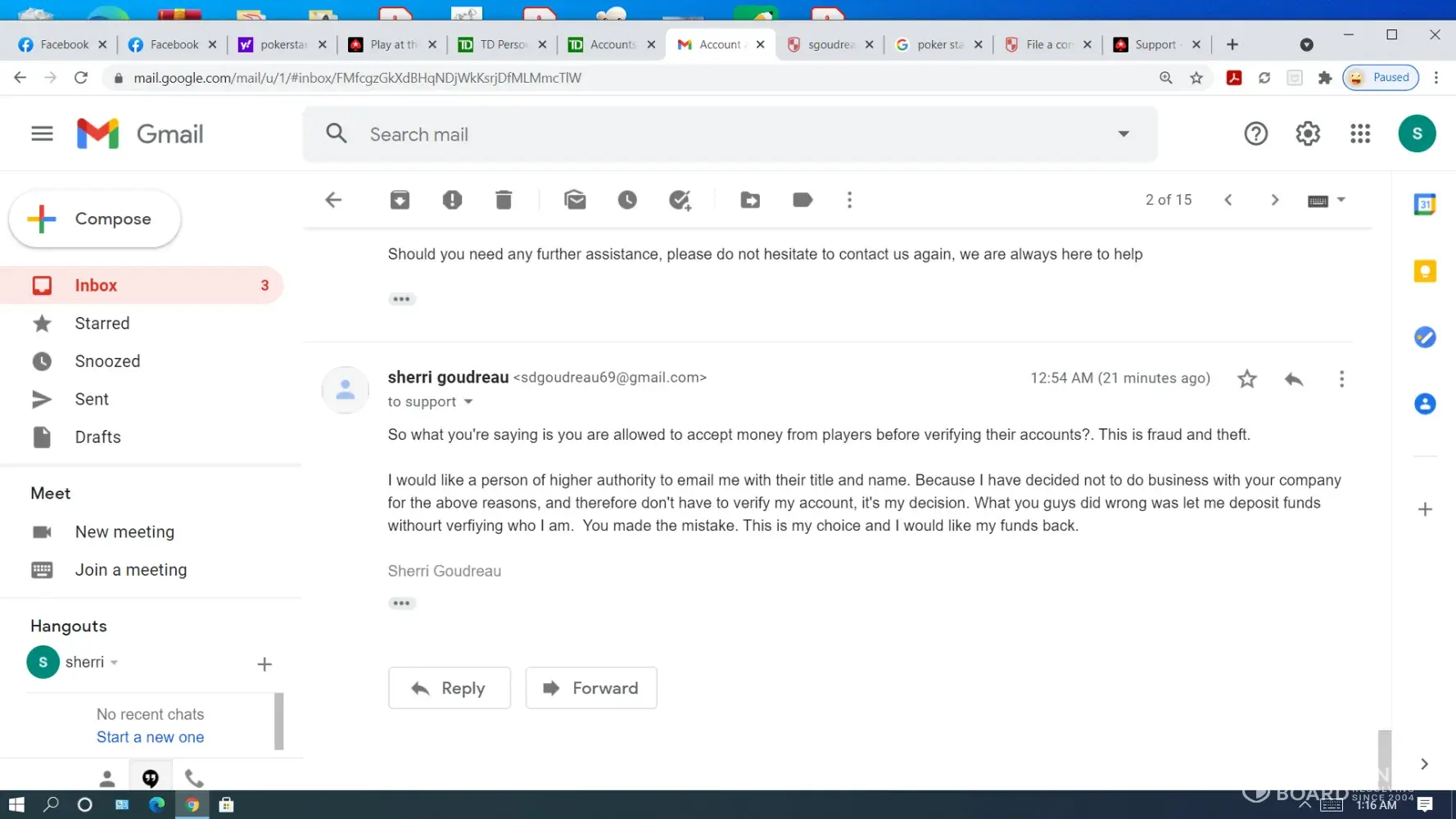Desired outcome: Just want to play poker and casino again as have had zero issues in past. They always responded to my emails right away and now nothing.