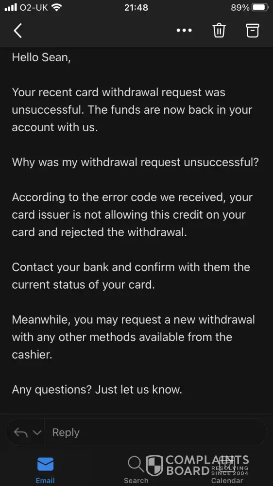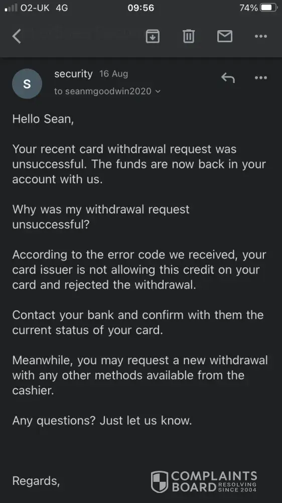 Played few games and won 450 I withdraw every time I win so had a few withdrawals in progress they frozen my account said to contact then can't do live chat as have to be logged in and I've sent 20+ emails and a complaint and nothing back it's like when u win they block you from it username seanm0989 they even said my bank refused the payments I've spoken to them and nothing wrong there side
