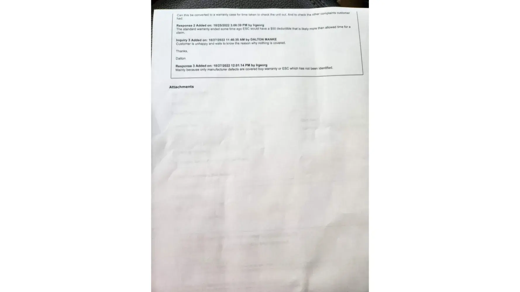 Desired outcome: 481.00 dollars back for Warranty Work they said wasnt covered so they can scam more customers out of money.