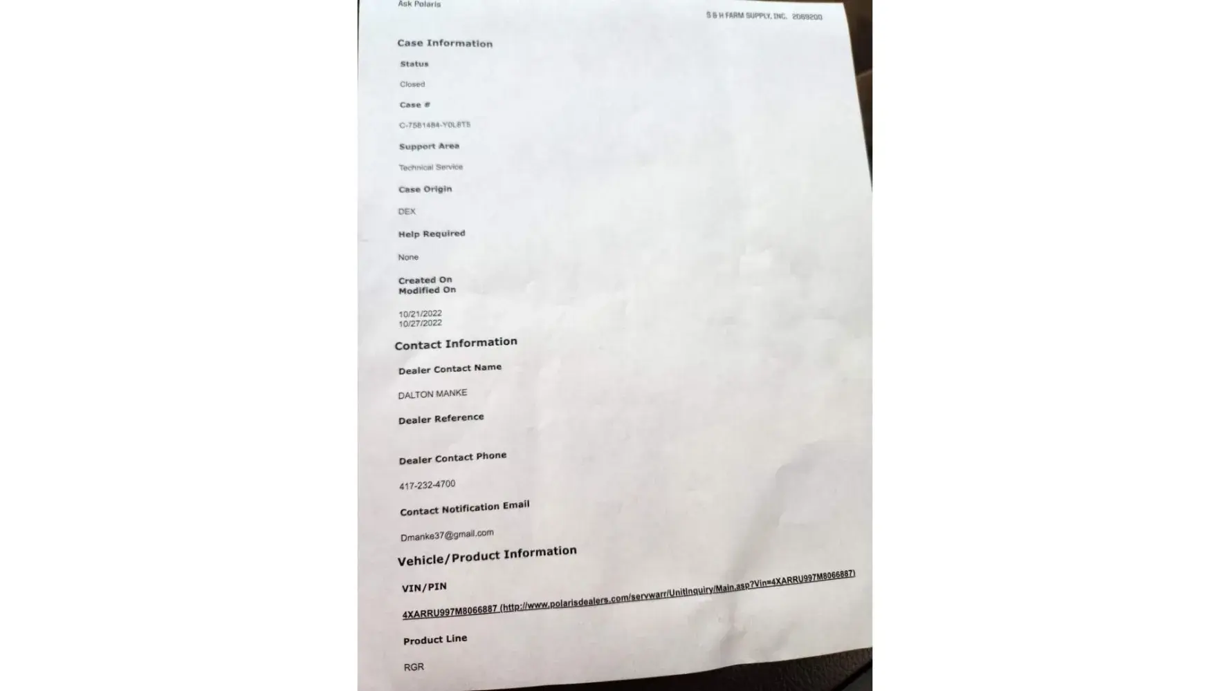 This email is to inform you of the issues we encountered with 2021 Polaris 650 Matryx VR1 we purchased.
