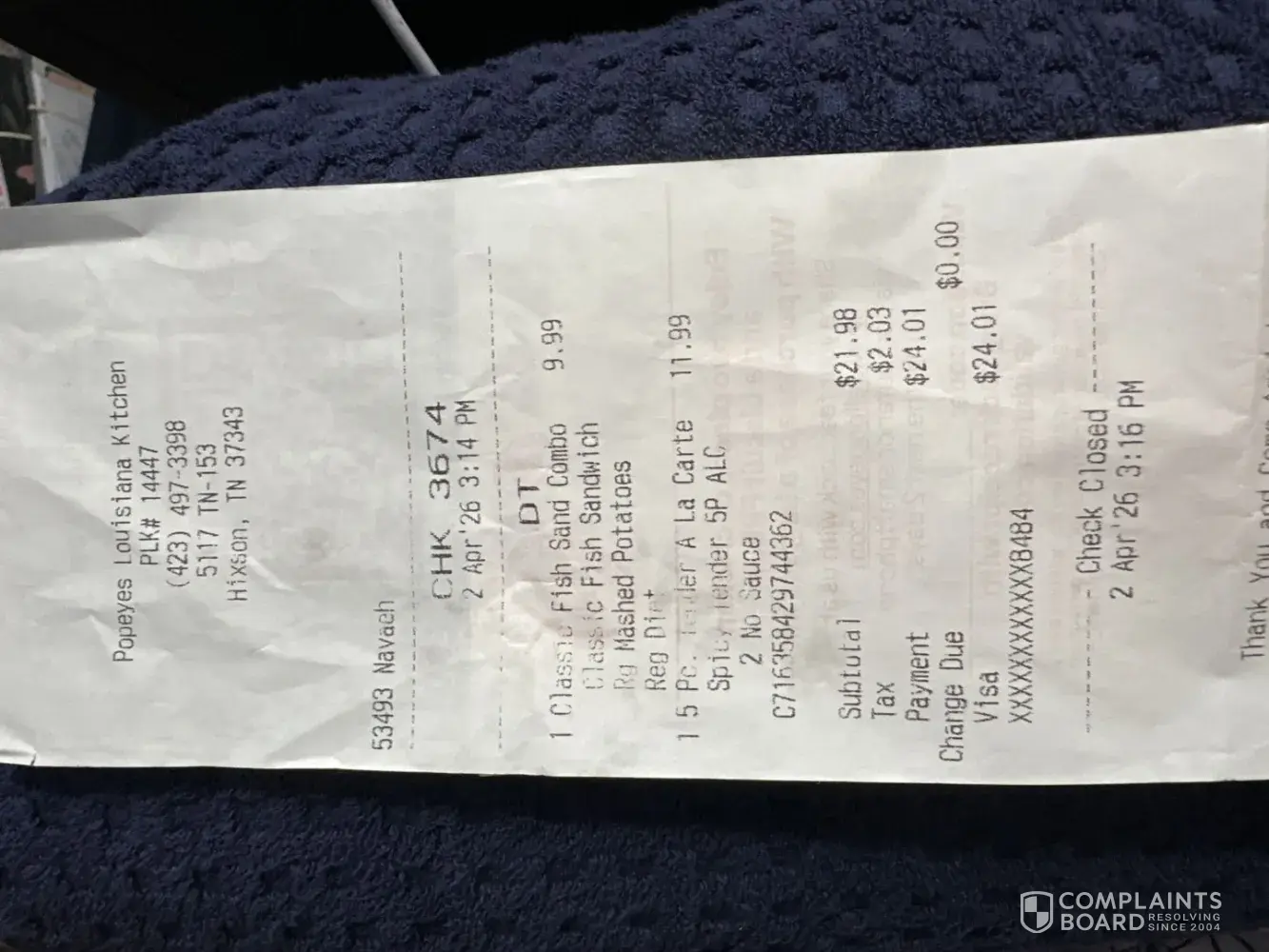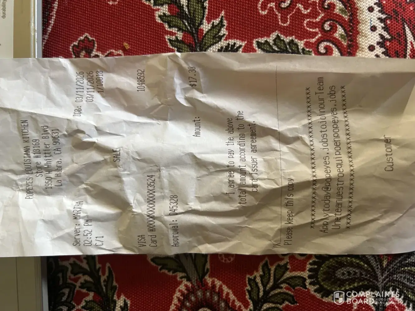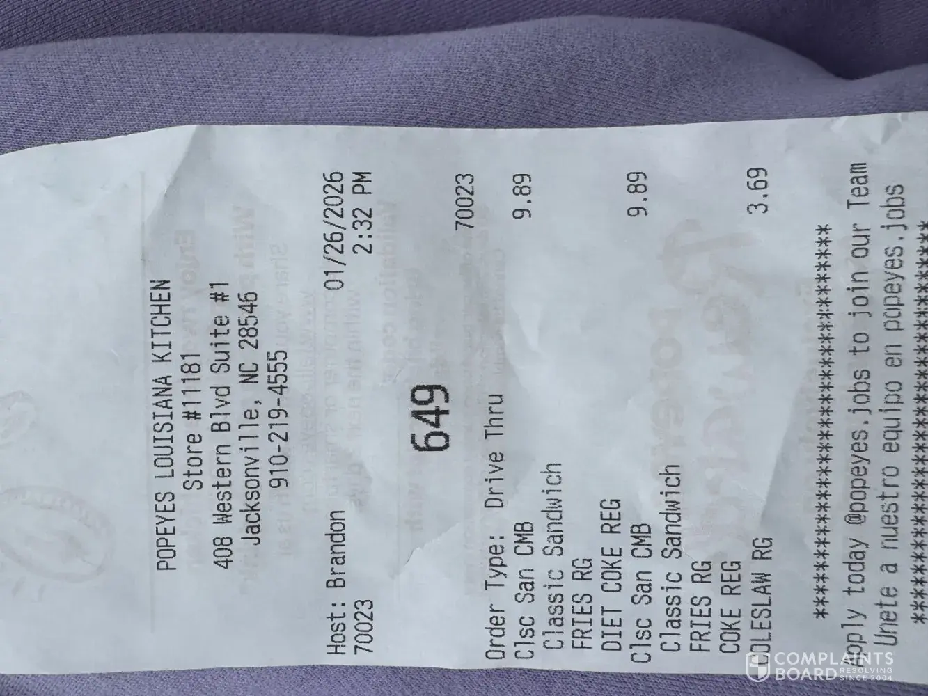 Read full complaint and 1 commentIs Popeyes Legit?