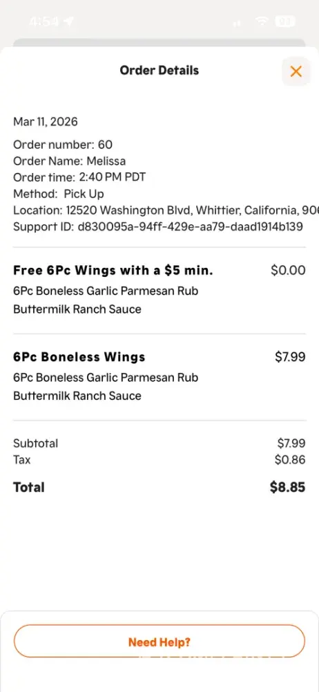 I ordered online trying to use the promo from Tmobile. The app changed my location from the La Habra location, 1950 W Whittier Bl, Ca to the 12520 Washington Blvd, Whittier Ca location. I could not go to that location, and I tried using customer support to cancel the order. The support only issued me a ticket. It would not cancel the order and I had to...