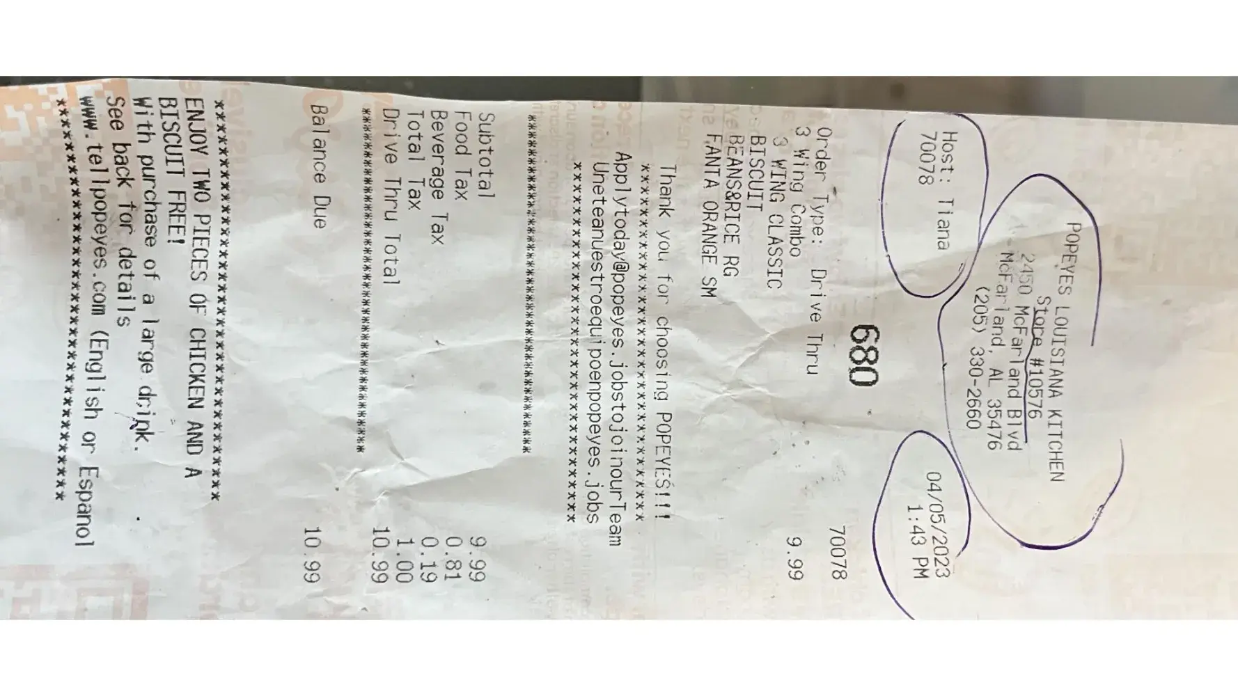 Popeyes Customer Service and food delivery.