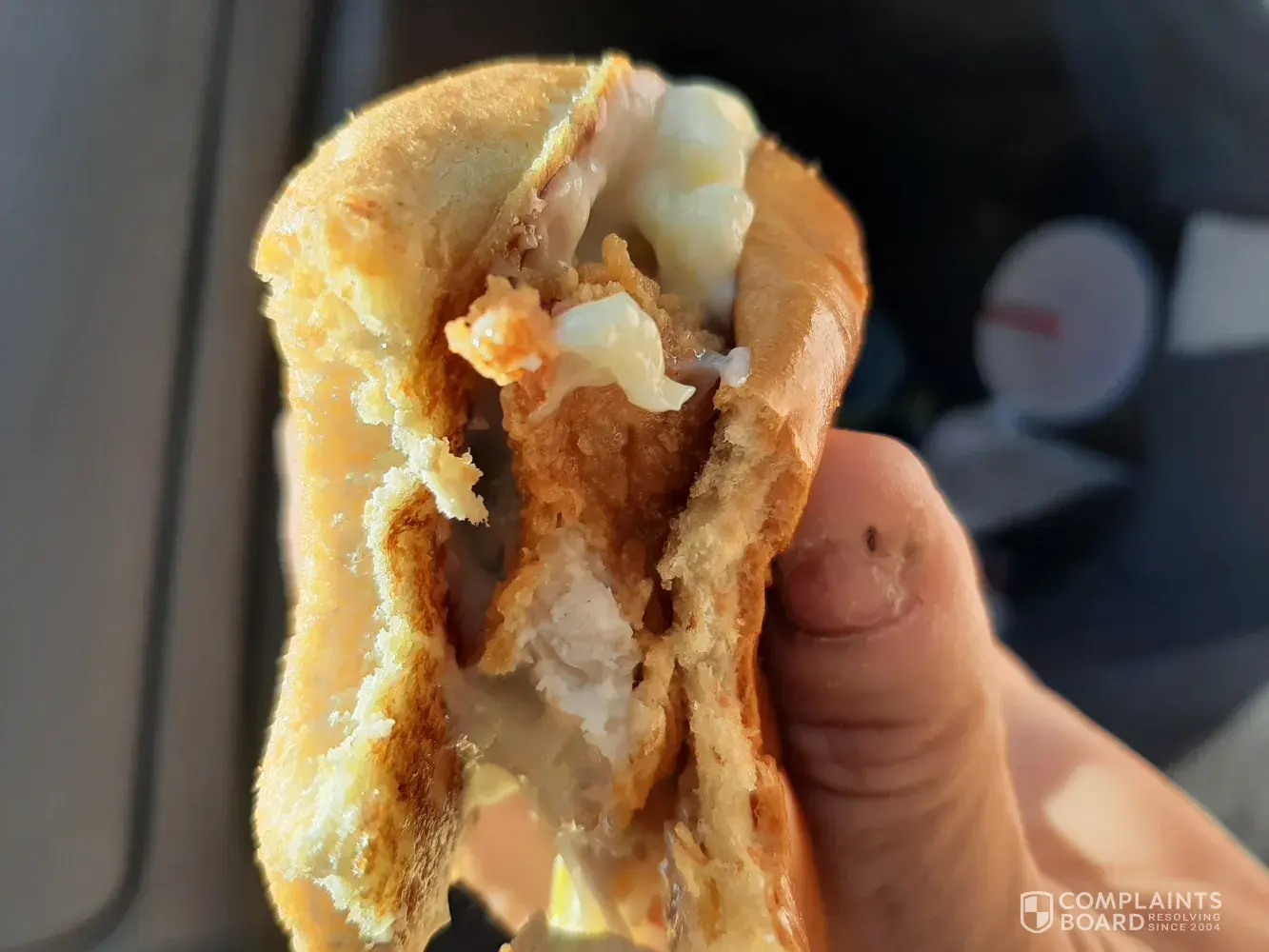 Good Afternoon. I had waited for months and months to be able to try your chicken sandwich. I am not a fast food eater but I only eat chicken as my meat. NO BONE. I tried the KFC chick sandwich absolutely not acceptable ! I tried the BK chicken sandwich absolutely not acceptable ! I WILL NOT TRY THE McDonalds Sandwich ! So was finally able to try Popeyes. I was SO disappointed. The meat was thin and breaded then doubled over and breaded again. It was not the vision I had seen on any commercial or advertising. It appeared the meat came in the wrong cut so they made it work as as a sandwich. Well that was not enough meat with too much breading. when i put in my order the person taking he order i told i wanted it freshly made, he said we just opened its all freshly made. Not really its already sitting there in the warmer. So i also ordered a large fry's. the fry's for being freshly made were already semi warm and greasy. Not as I was imaging them either. The person should have just made my order as I asked freshly ! I called the complaint line and I am on file there. I called on 7/6/21 around 11 am. I also have pictures. They also tried to make the sandwich more thicker buy putting on way to much mayo. photo 1 is an up close sorry blurry of the doubled over thin pieces with too much breading and mayo. photo 2 is one side that isn't all the way doubled over with thin pieces. photo 3 is the mayo so thick it is coming out of the bun. I will never try popeyes again it was a waste of my money and time. if the complaint line would have offered me a free sandwich and fries to try again even after i said i won't be going back. I would have tried it again just because I have read so many positives