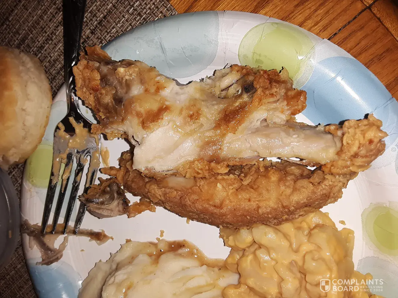 Read full complaintChicken, mashed potatoes, macaroni and cheese