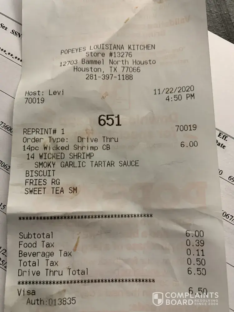 Read full complaintPopeyes