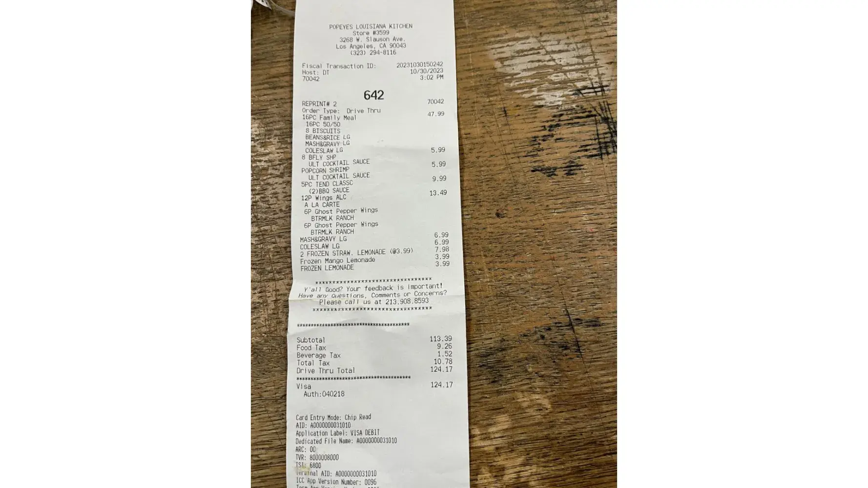 One was for $24.83 at Popeyes.