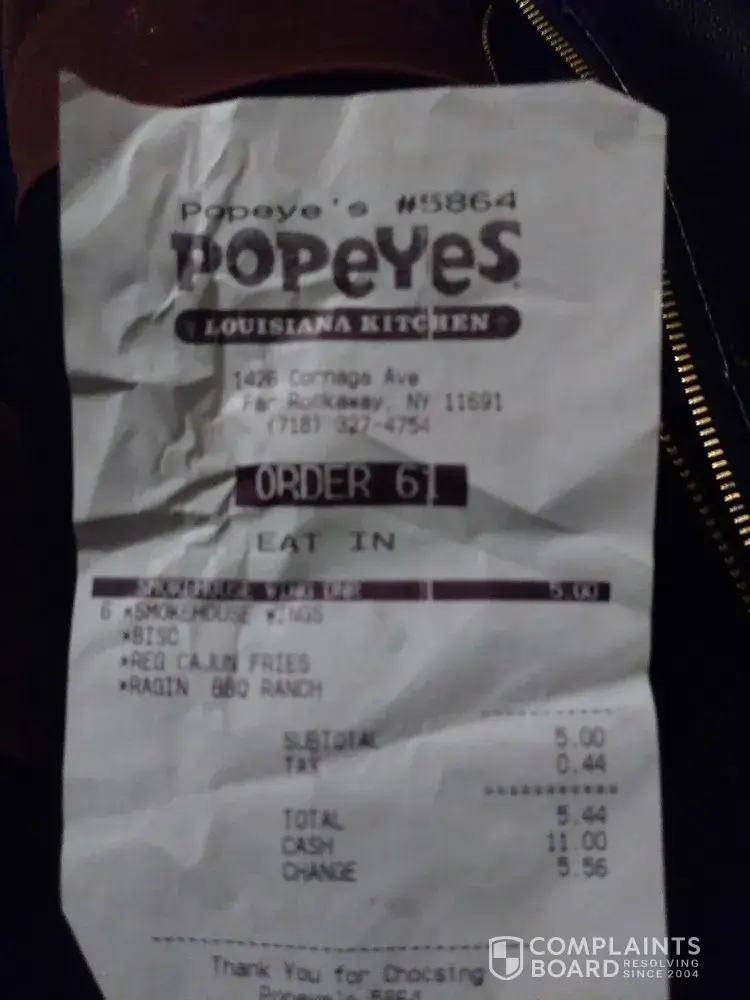 Enough is enough it’s time and time again I just said ok now I’m putting in a complaint. We need the the highest level of customer service no matter where the Popeyes is located. I go to the one in co op city on occasions and they give me exactly what I ask for.