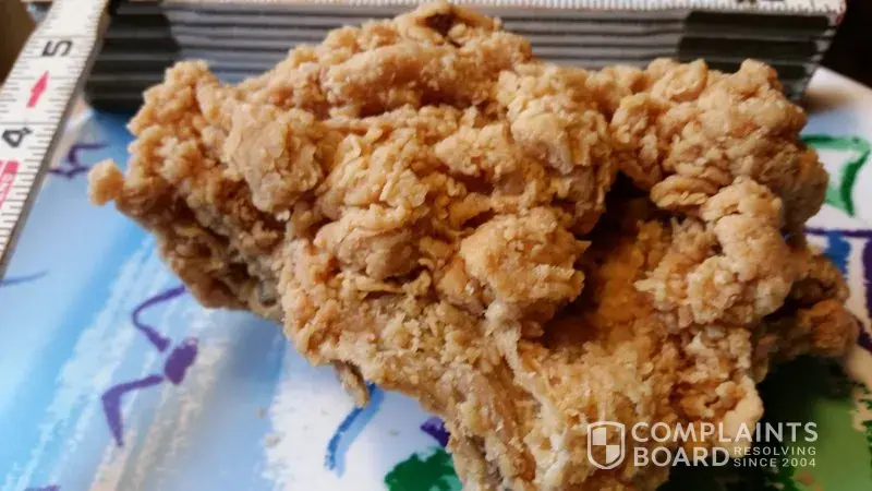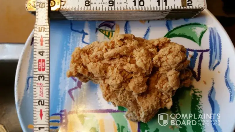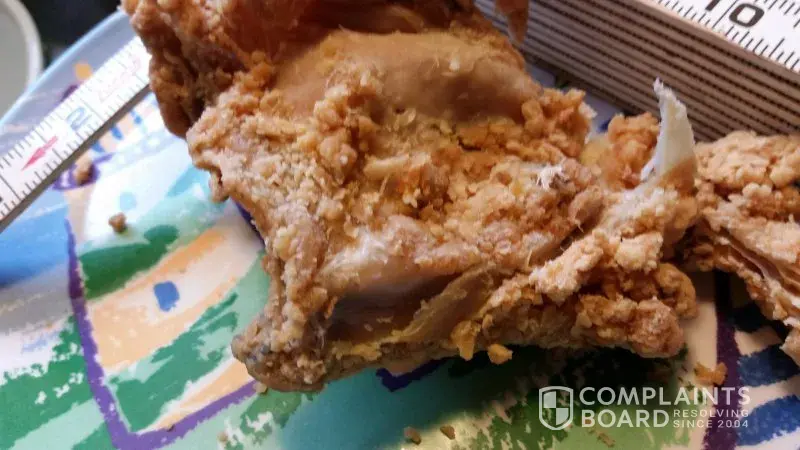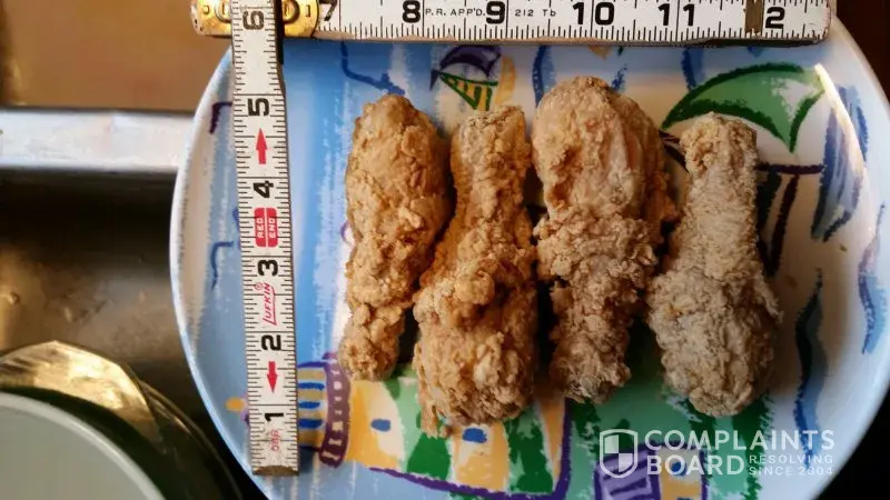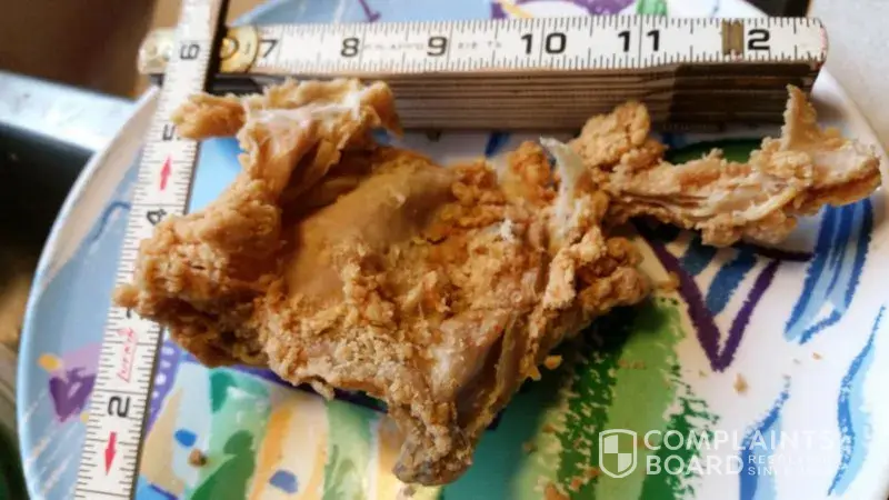 You are pathetic, do you take a measuring tape everywhere? Also why did you take the pictures after you ate part of the chicken and claim it was resold?