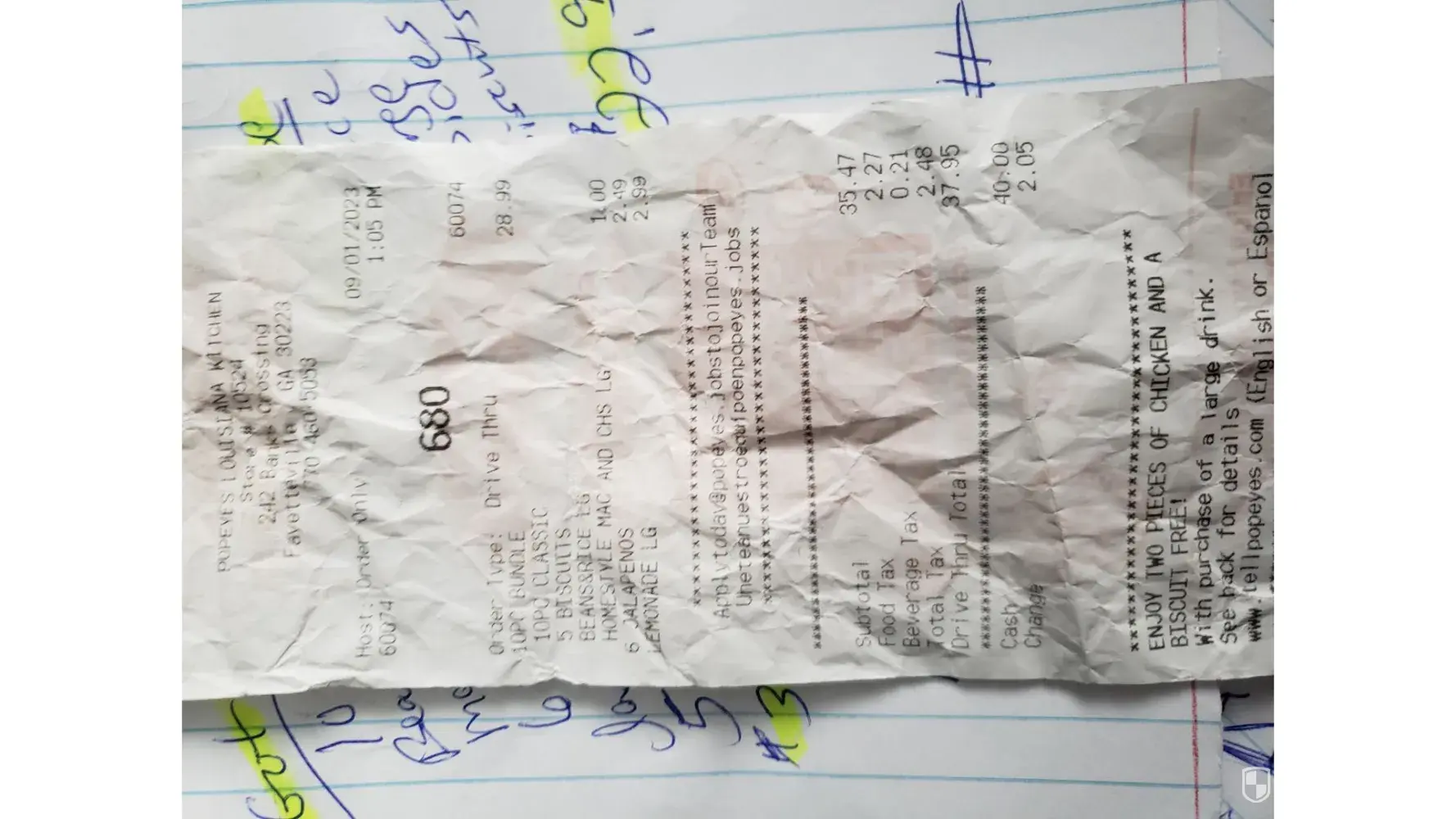 On September 4, 2023, my husband and I decided to try a Popeye's fast food restaurant. We were anxious to try the restaurant, and had coupons, which was an extra incentive to go.