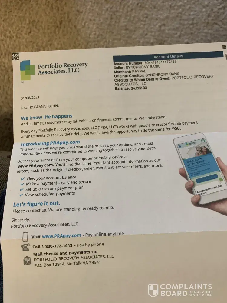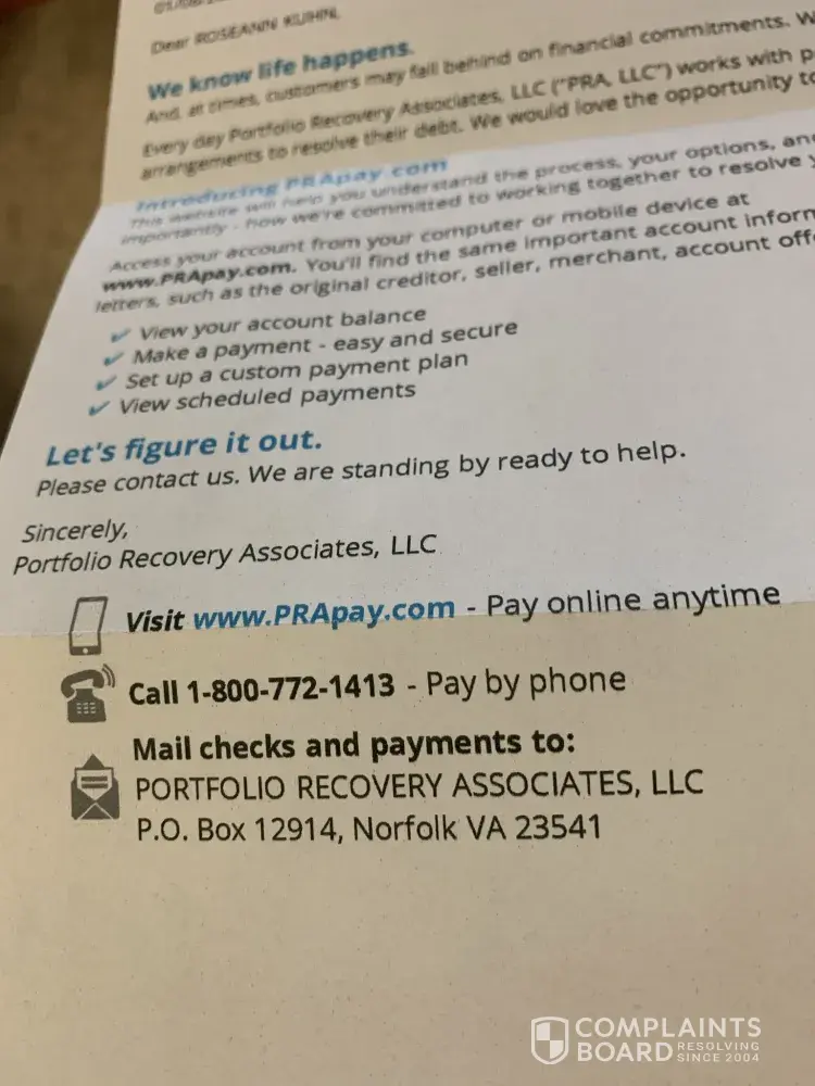 A few months later, A representative from PRA basically cussed me out saying that I was taking food from his kids and the state I lived in was nothing but a a bunch of low life crooks. He said that because I paid the company direct, that he did not receive his compensation. At the time, I was a single parent of two, working three jobs, and no child support coming in. I took it personal.