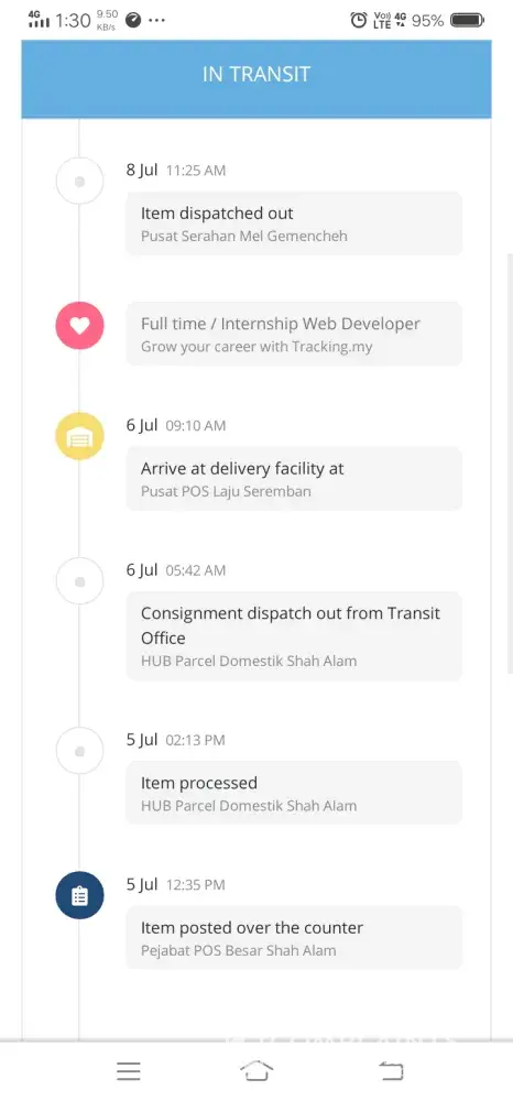 Pos Malaysia Kena tidak update servis semasa..last update 26/7/2021