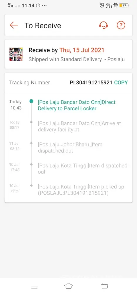 Pos Malaysia Parcel not delivered since 17th June - PM210726000400
