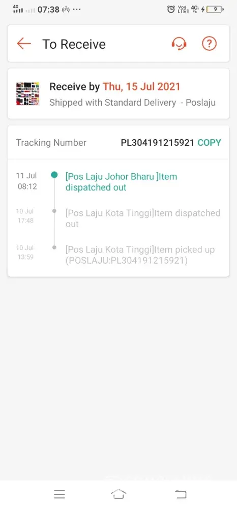 Barang pos pada 18/07/2021. Sampai hari ni tak sampai lagi.
