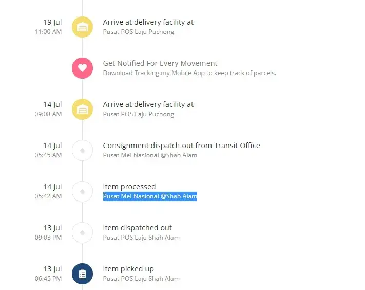 Pos Malaysia Parcel still at the SAME delivery facility after 6 days